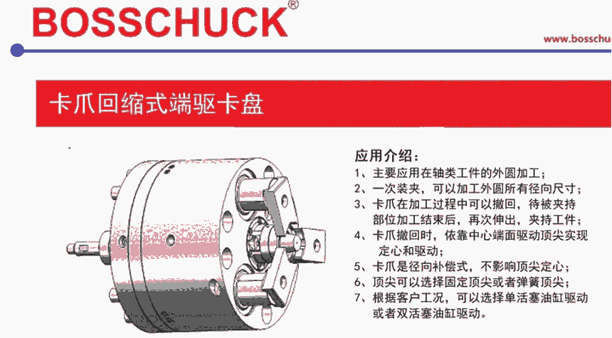 代理BOSSCHUCK卡爪回缩式驱动卡盘,卡爪径向补偿式