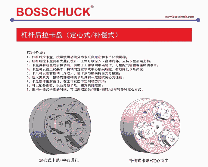 原装进口BOSSCHUCK杠杆后拉卡盘定心、补偿结构解决方案